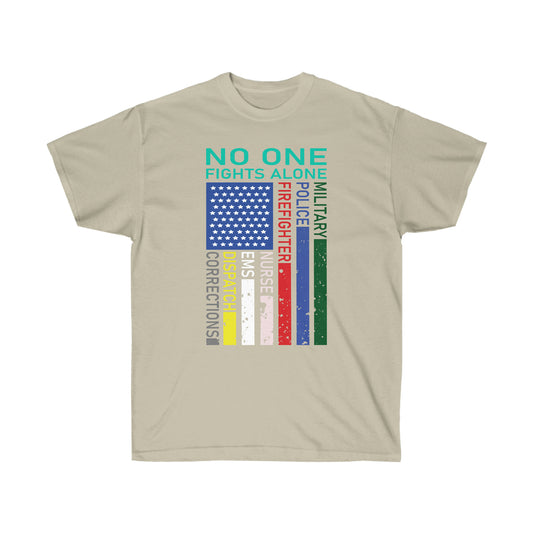 NO ONE FIGHTS ALONE FIRST RESPONDER/MILITARY FLAG (Unisex Ultra Cotton Tee)