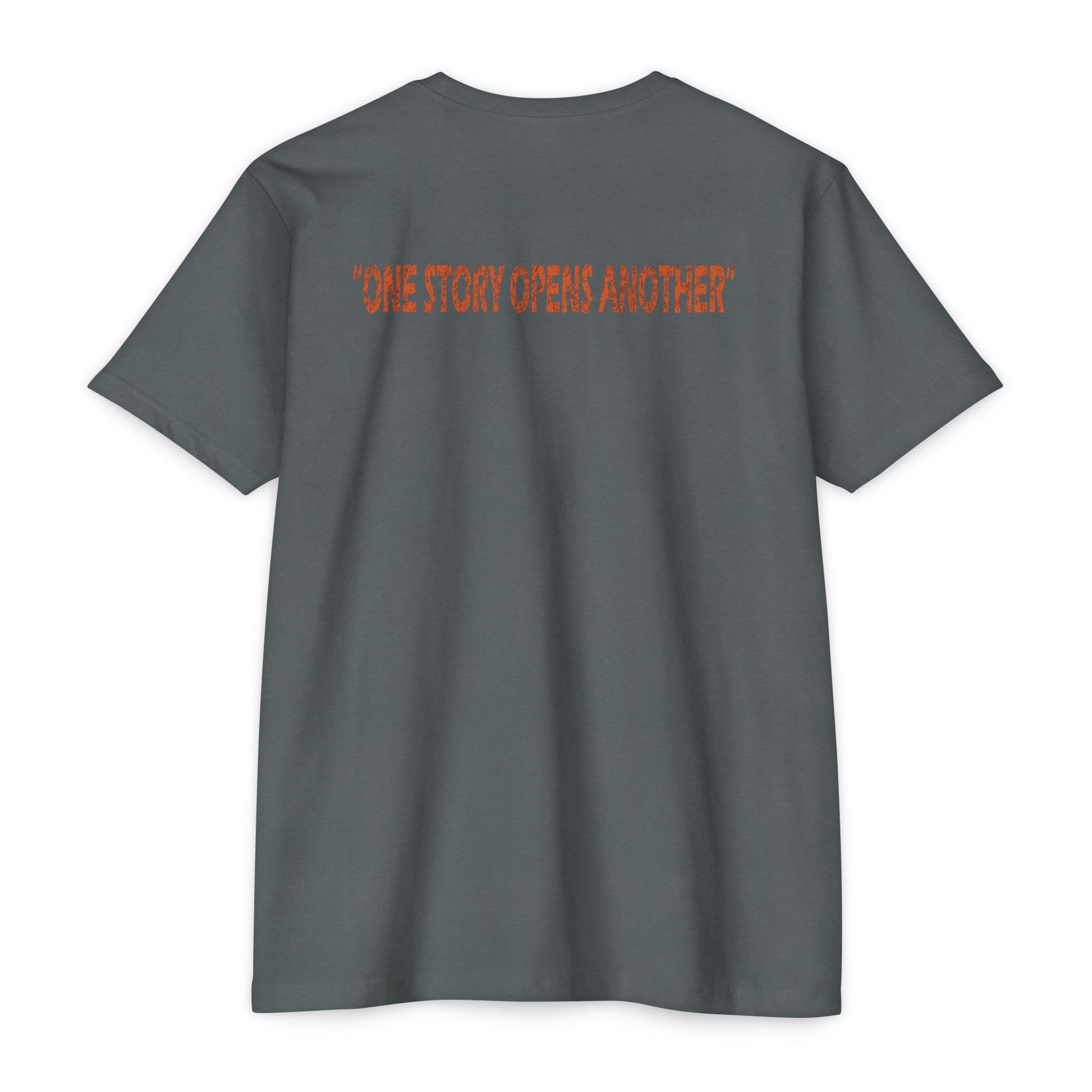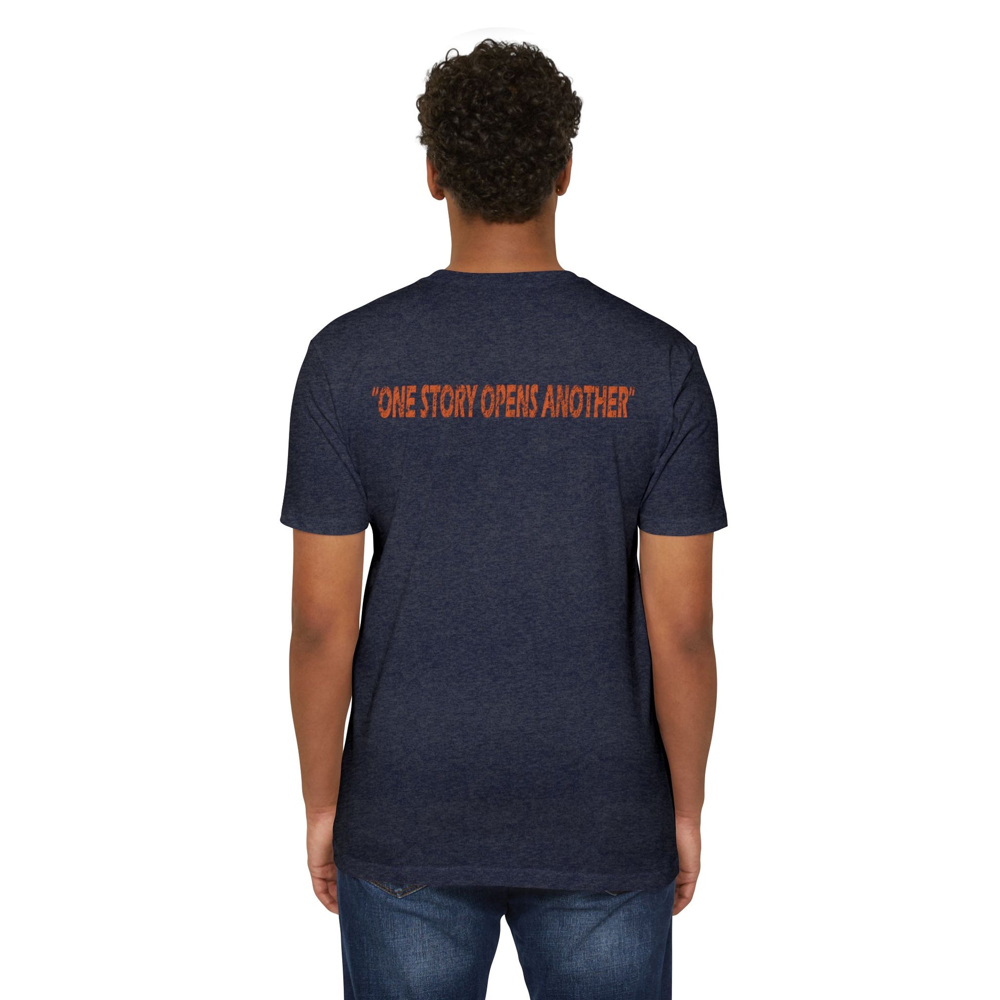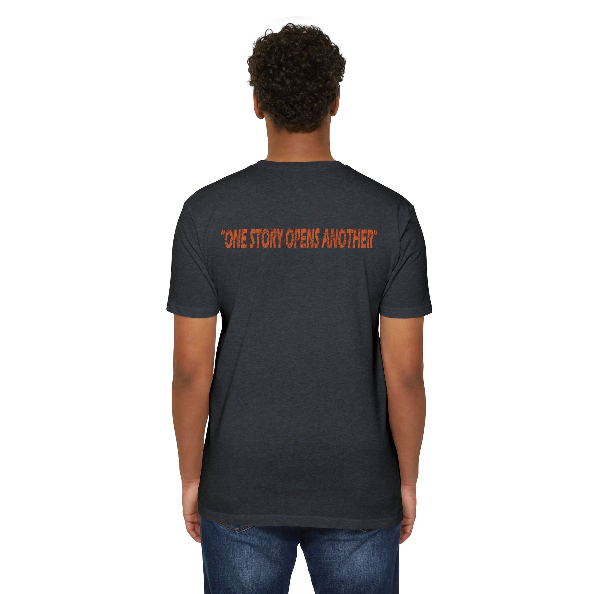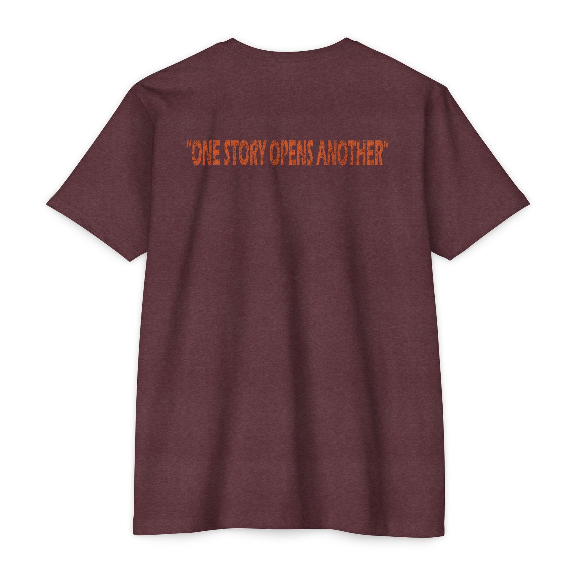 Wear your resilience. This classic-fit tee carries a quiet, worn-in look with bold lettering that reads “STORIES IN THE STRUGGLE” across the chest and a small, reflective tagline on the upper back: “One story opens another.” The faded, distressed print and heartbeat waveform detail give it a lived-in, grassroots vibe — the kind of shirt you reach for after a long day when you want to feel seen but grounded. Lightweight and soft, it layers easily under jackets or stands alone during warm evenings. It’s made to move with you through late-night conversations, support-group meetups, open-mic nights, or slow coffee shop mornings where you trade stories and find connection.